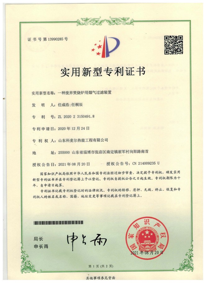 焚燒設(shè)計(jì)溫度1400攝氏度,使用溫度在400-900攝氏度之間調(diào)整;煙氣排放溫度60-80攝氏度。