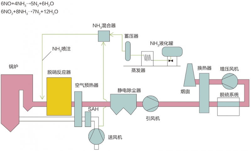 選擇性催化還原法(Selective Catalytic Reduction,簡(jiǎn)稱SCR),在一定的反應(yīng)溫度條件下,煙氣中的NOx和還原劑NH3在催化劑作用下發(fā)生還原反應(yīng),生成產(chǎn)物為N2和H2O。
